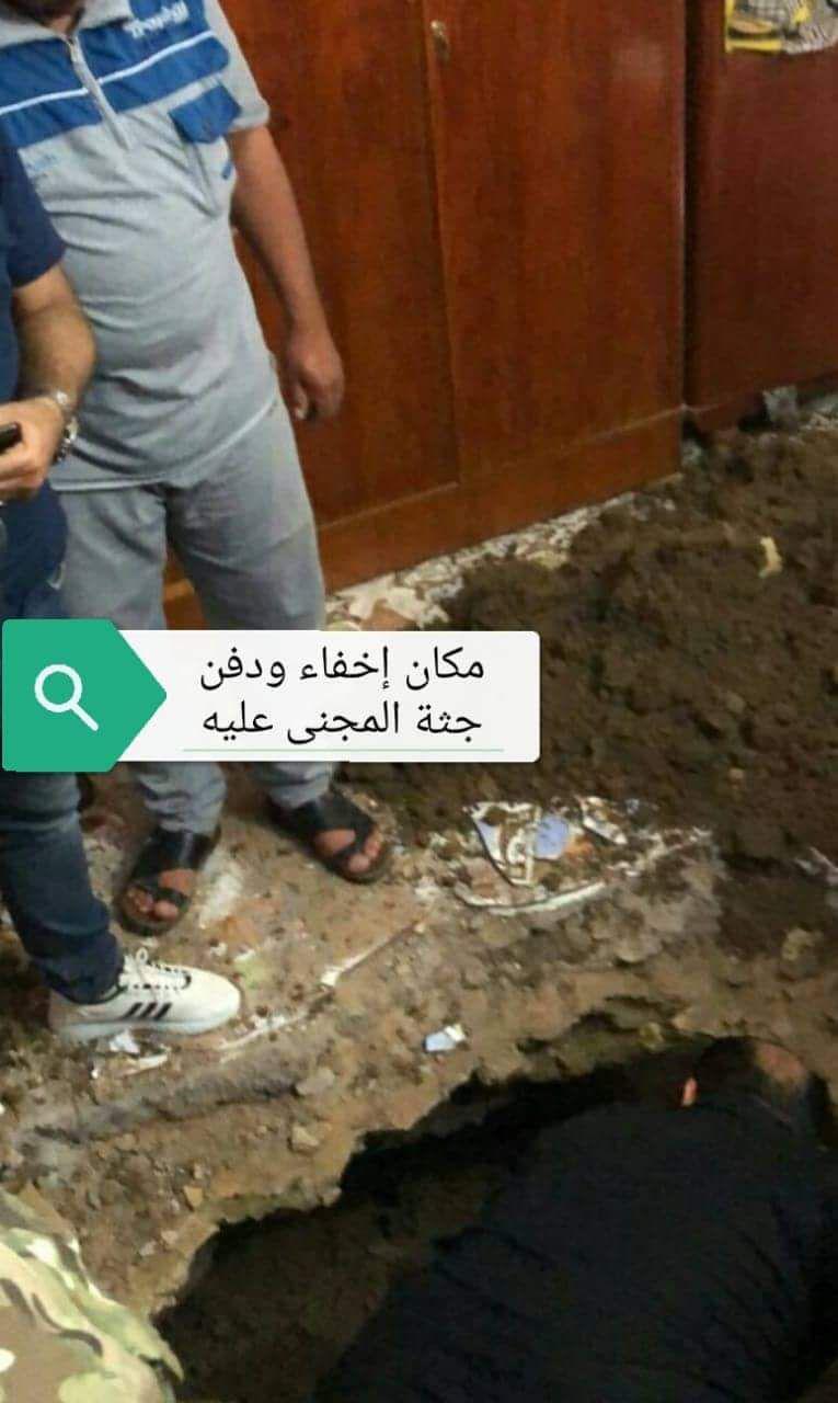 وأشار "بعد جهود مستمرة وعمل متواصل من قبل فريق العمل وبعملية أمنية مهنية وتقنية عالية تم التوصل إلى المتهم وتبين انه يسكن منطقة {1000 دار} في وسط المدينة ولدى جمع الأدلة والمعلومات تم التوصل إليه وألقي القبض عليه واعترف صراحة خلال التحقيق بقيامه بقتل المجنى عليه والده {الأب} قبل أكثر من أحد عشر عاما بضربه بواسطة آلة رافضة {بوري} وخنقه بواسطة {حبل} حتى الموت بالاشتراك مع زوجة أبيه الثانية التي حرضت واشتركت على إرتكاب جريمة القتل لزوجها البالغ من العمر 63 عاماً بدوافع بشعة، وتم تحديد مكان إخفاء ودفن الجثة في دار سكناهم السابق في منطقة أبو رمانة".