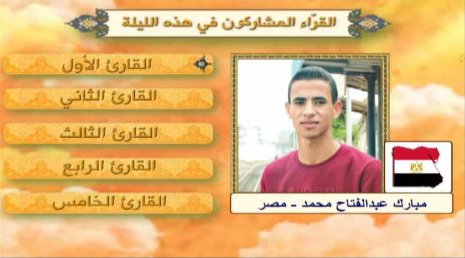 تلاوة المتسابق المصري "مبارك عبدالفتاح" في منافسات الأمسية الثالثة