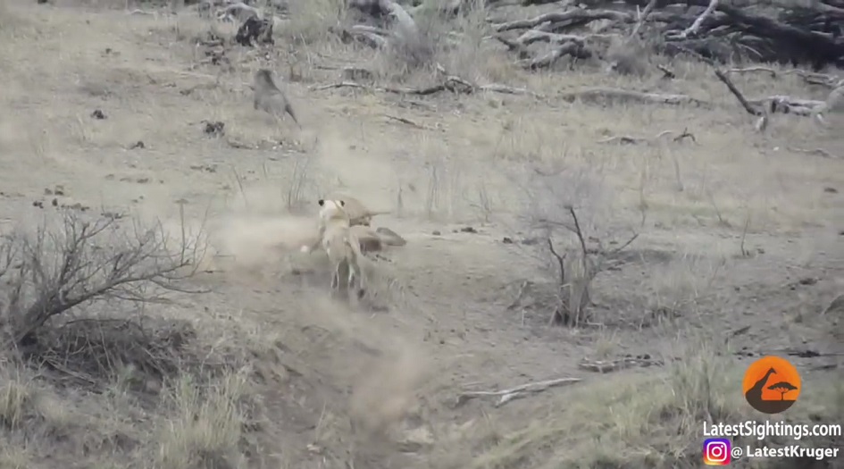 ونشر مقطع الفيديو الذي صوره شاهد عيان للحادث على قناة يوتيوب لحديقة كروغر الوطنية. وقال مصور الفيديو، كوبوس فيزر (54 عاما): "شاهدنا في البداية أسدا ثم لاحظنا لبؤتين. كانوا هادئين بداية الأمر. ثم وجمت اللبؤتان وبدأتا التسلل باتجاه فريسة اتضح أنها خنزير بري".