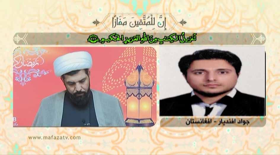 إن للمتقين مفازا – الكوثر: تلا المتسابق المشارك من أفغانستان "جواد أفنديار" تلاوته حسب القرعة من سورة الزمر في ثامن أماسي مسابقة "إن للمتقين مفازا" القرآنية.