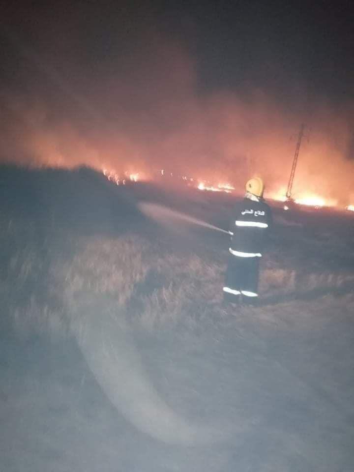 اندلع حريق كبير في ارض زراعية بقضاء المناذر في النجف الاشرف.