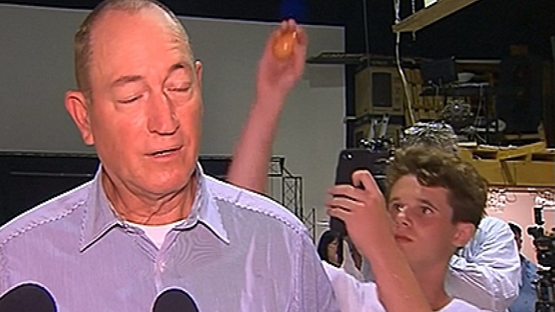 وبعد يوم من تعليقاته على مذبحة المسجدين، كسر شاب يبلغ من العمر 17 ربيعا بيضة على رأس أنينغ في مؤتمر صحفي عقد في 16 مارس/آذار الماضي بمدينة ملبورن الأسترالية، قبل أن يستدير السناتور سريعا ويشرع بضرب المهاجم، ثم تدخل الحضور لفك الاشتباك إلى حين وصول الشرطة التي اعتقلت الفتى الذي ذاع صيته وأصبح يلقب بـ "فتى البيضة".