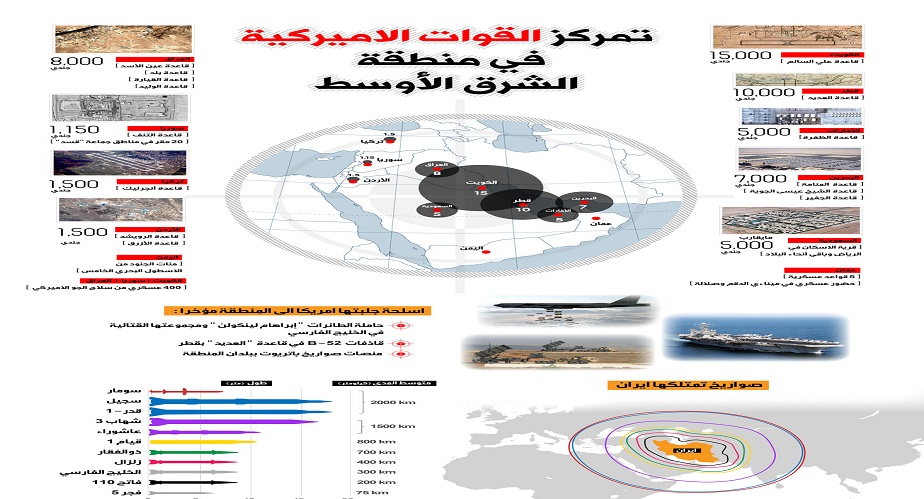 تمتلك الولايات المتحدة الامريكية قواعد عسكرية في المنطقة تستخدمها لبسط نفوذها في المنطقة والتدخل فيها، فأين تقع هذه القواعد وكم يتمركز فيها من الجنود؟
