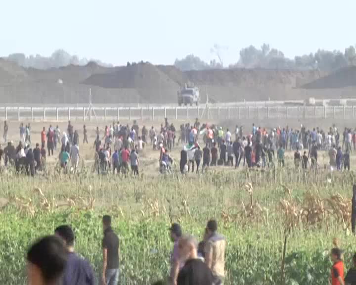 أصيب ستة عشر فلسطينياً بنيران الإحتلال الإسرائيلي خلال مشاركتهم بمسيرات العودة وكسر الحصار على حدود قطاع غزة. وأفادت مصادر ميدانية بإصابة مسعفة متطوعة بقنبلة غاز في قدمها من قبل قوات الإحتلال شرق خان يونس جنوب القطاع. كما أفاد الإحتلال باندلاع حريق كبير شرق عسقلان وحريق رابع في شعر هنيغف بفعل بالونات حارقة أطلقت من قطاع غزة. وأحيىى الفلسطينيون الجمعة التاسعة والخمسين من مسيرات العودة وكسر الحصار تحت عنوان جمعة التراحم والتكافل.