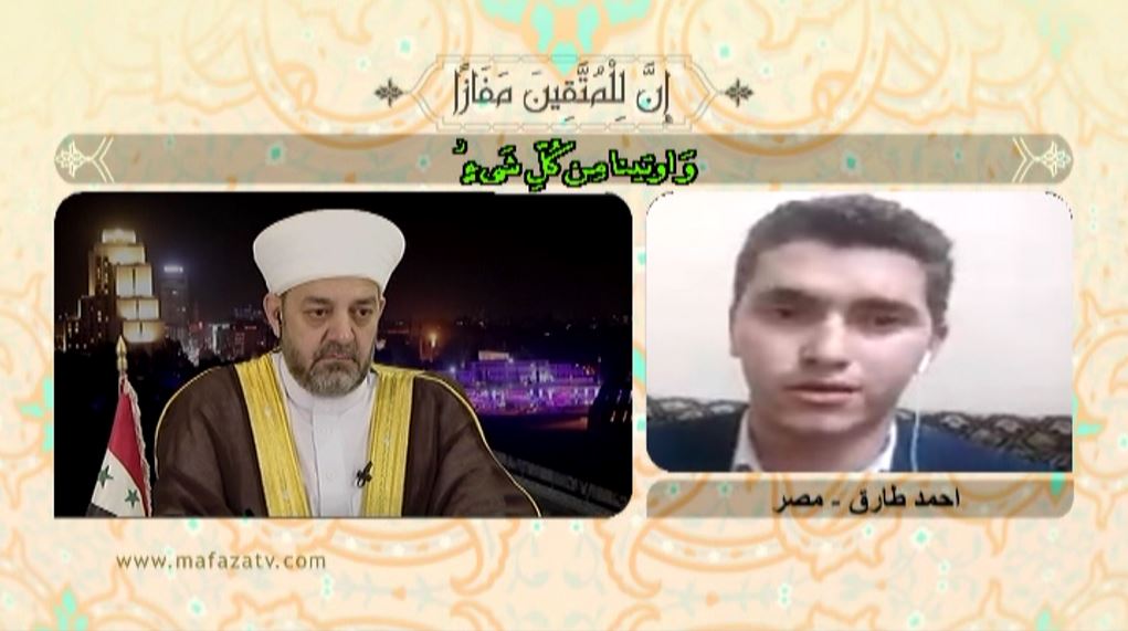 إن للمتقين مفازا – الكوثر: تلا المتسابق المصري "احمد طارق" تلاوته حسب القرعة من سورة النمل في الليلة الخامسة من المرحلة نصف النهائية من مسابقة "إن للمتقين مفازا" لشهر رمضان 2019.