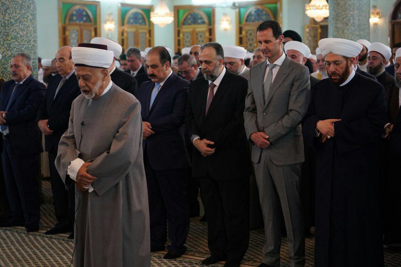 وأدى الصلاة مع الرئيس الأسد وزير الأوقاف والمفتي العام للجمهورية وعدد من المسؤولين في الدولة والحزب وعدد من أعضاء مجلس الشعب ومجموعة من علماء الدين الإسلامي وجمهور من المواطنين مؤتمين بفضيلة الشيخ بشير عيد الباري مفتي دمشق.