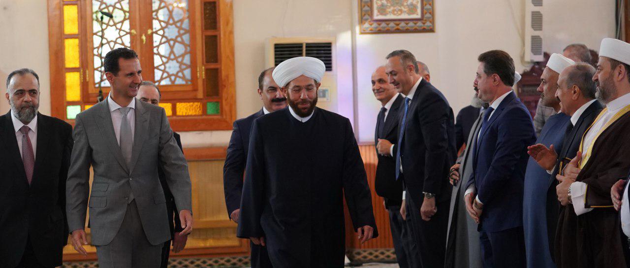 وأكد خطيب العيد "أن الرئيس الأسد يصون الثوابت ويؤمن بالإسلام كما أنزله الله نقياً طاهراً من تحريف أعدائه المبطلين وهو يدافع عن أمتنا العربية والإسلامية لأنه واضح الرؤية مؤمن بربه متمسك بقيمه الأصيلة وهو ما تم تجسيده في كلمته في افتتاح مركز الشام الإسلامي الدولي لمواجهة الإرهاب والتطرف والتي أكد فيها أن التدين بناء والتطرف هدم وأن مكافحة الإرهاب تبدأ بالتدين الصحيح الذي يشكل الجسر من أجل الوصول إلى الاعتدال والتطبيق الصحيح للدين وحمايته من الانحراف".
