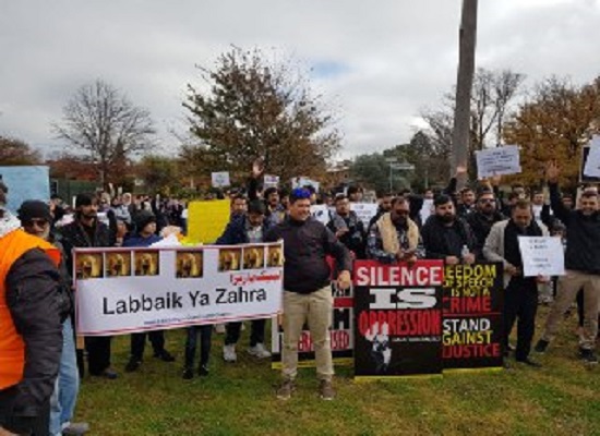 المشاركون رفعوا لافتات تلقي الضوء على جرائم آل سعود بحق الأماكن المقدسة في البقيع، مطالبين بالإلتفات إلى هذه القضية الإسلامية، كما عبّر الحاضرون عن نبذهم لكل أشكال الإرهاب والفكر الوهابي المتطرف الذي تغذيه السعودية في مختلف دول المنطقة والعالم.