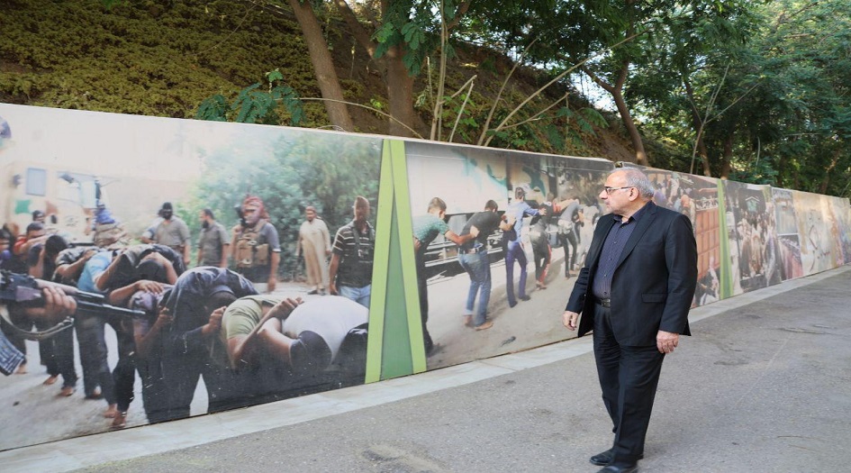ونقل البيان عن عبد المهدي قوله: "بقلوب حزينة ولكن برؤوس مرفوعة نقف اليوم في المكان الذي ارتكبت فيه هذه الجريمة البشعة على يد عصابة داعش الارهابية التي اقدمت على قتل شباب عزّل من السلاح".