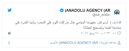 وقال أردوغان، في كلمة أمام تجمع لأنصار حزبه "التنمية والعدالة" اليوم الثلاثاء: "مفهومنا السياسي خال من إلقاء اللوم على الشعب، ولدينا القدرة على محاسبة أنفسنا وتصحيح أخطائنا".