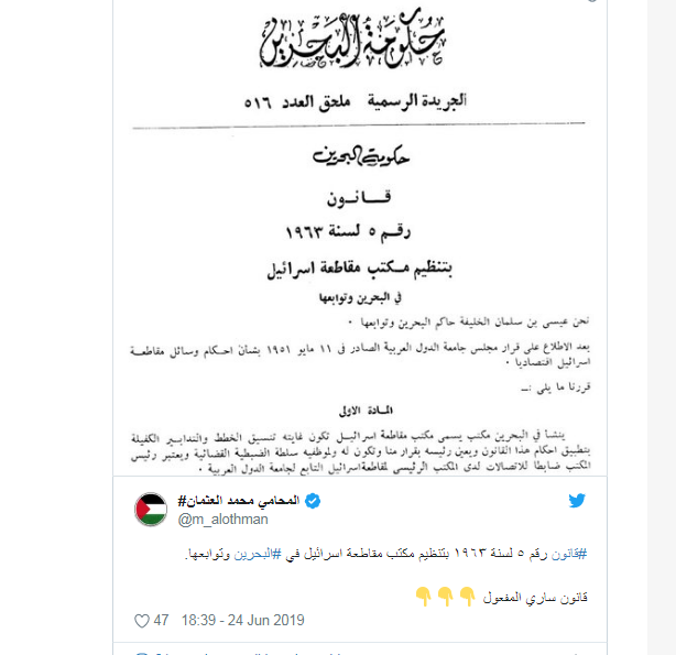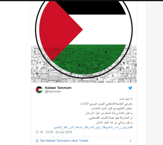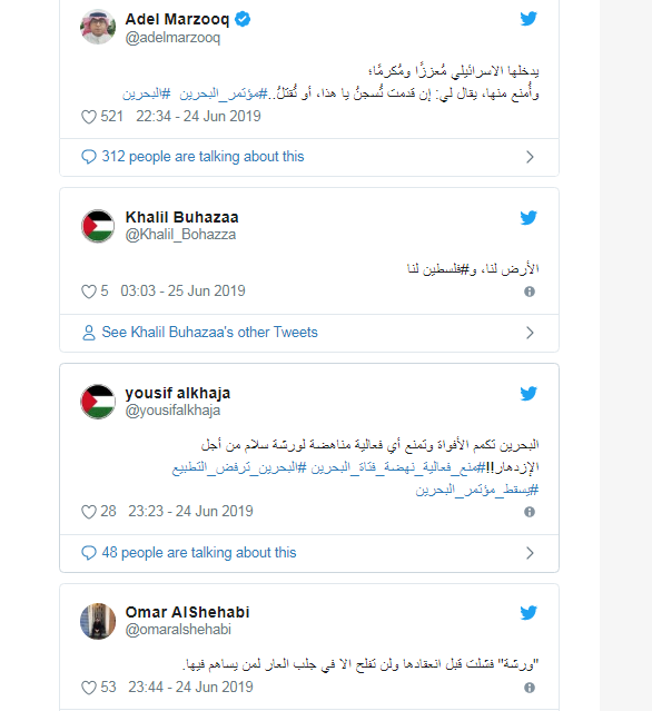 وهذه أبرز التغريدات والمنشورات البحرينية الرافضة للورشة: