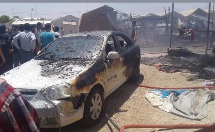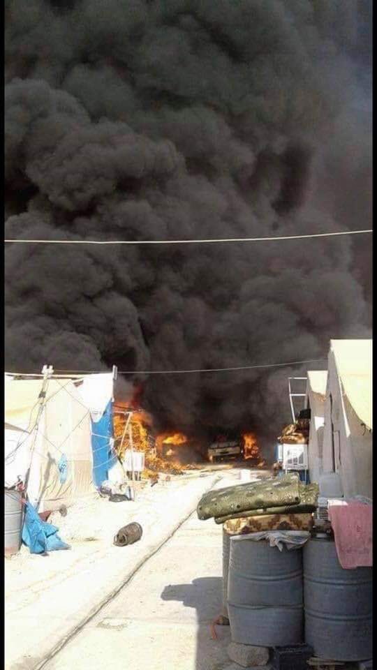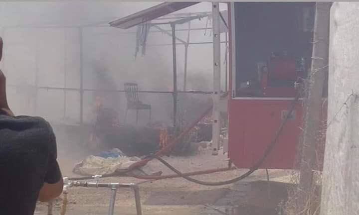وأوضح سعدو، أن الحريق أسفر عن احتراق 15 خيمة، بما فيها من مواد منزلية وغذائية، وسيارتين تعود للنازحين.