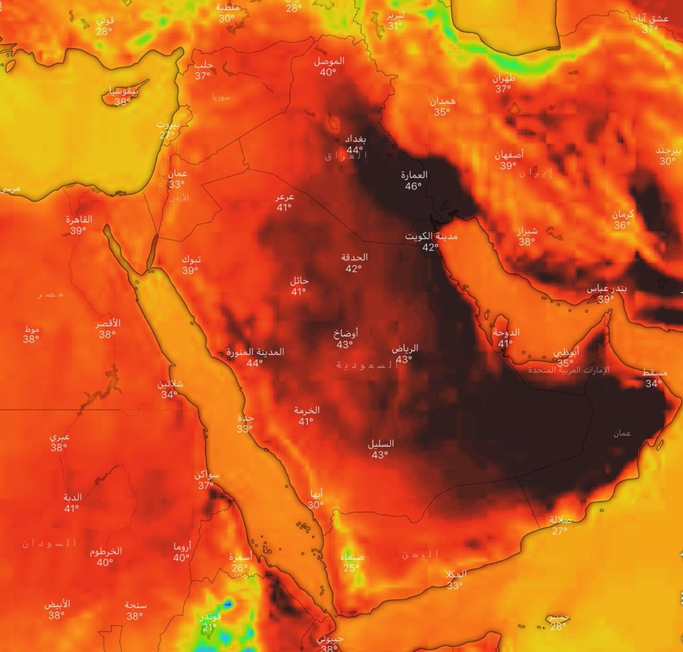 وأوضح انه وخلال بداية الاسبوع المقبل، تشهد بعض المناطق موجة حارة ودرجات حرارة خمسينية، حيث من المتوقع ان تؤثر على جنوب العراق اضافة الى الكويت والسعودية.