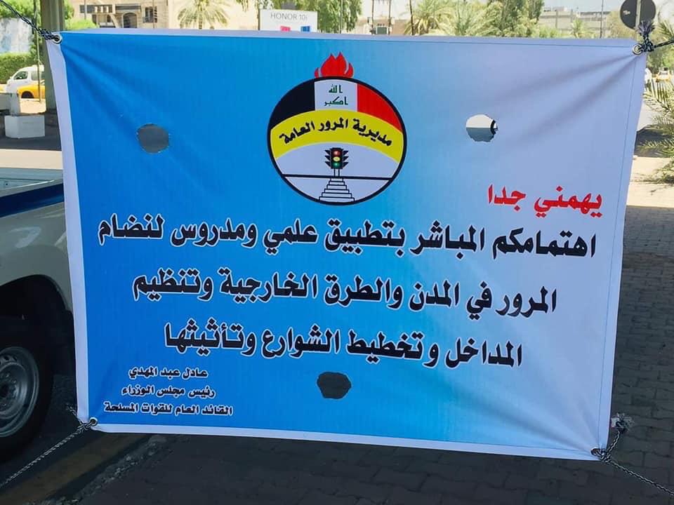 وبحسب اعلام مديرية المرور العامة في العراق فأن "رسالة عبد المهدي تمت طباعتها على بوستات وستوزع في شوارع بغداد".
