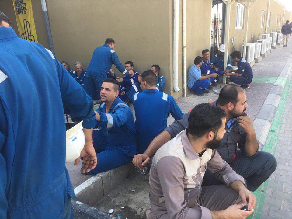 بالصور.. اضراب عمال حقل الرميلة النفطي بالبصرة..والسبب صادم