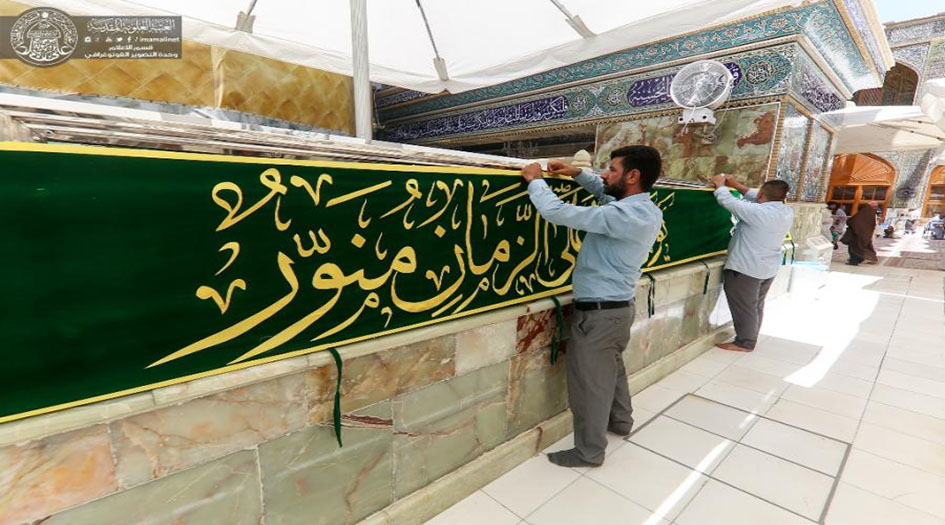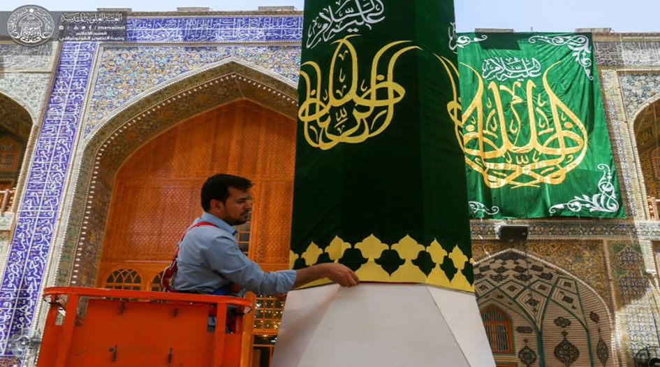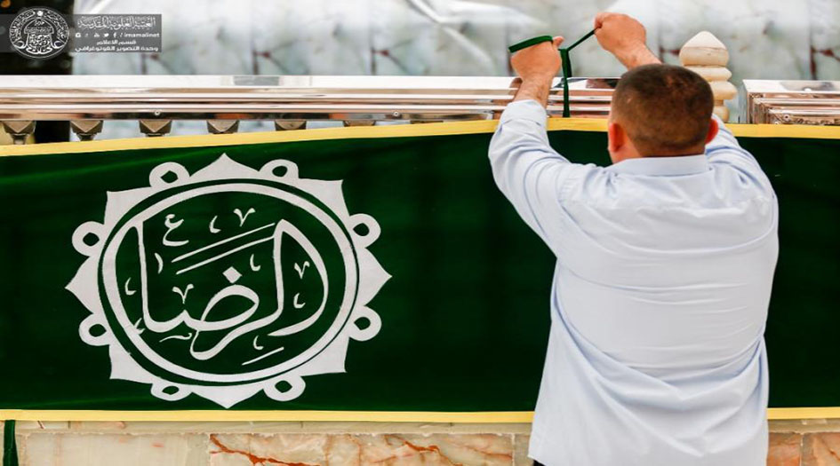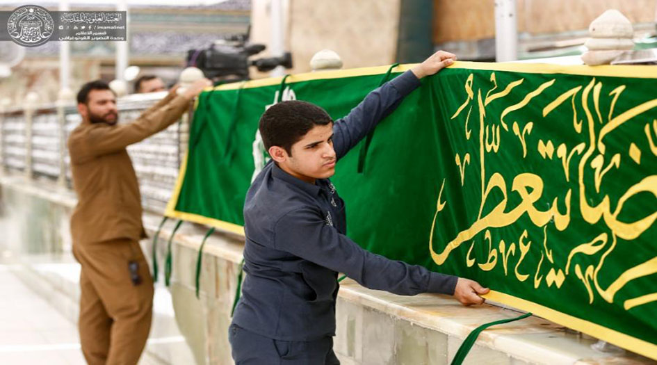 الكوثر - بادرت الكوادر الفنية العاملة في شعبة التطريز التابعة الى قسم المنقوشات وإحياء التراث في العتبة العلوية المقدسة الى تزيين الأرجاء المباركة لمرقد أمير المؤمنين ( عليه السلام) استعداداً للاحتفال بالذكرى العطرة الميمونة لولادة ثامن الحجج الإمام علي بن موسى الرضا ( صلوات الله وسلامه عليه).