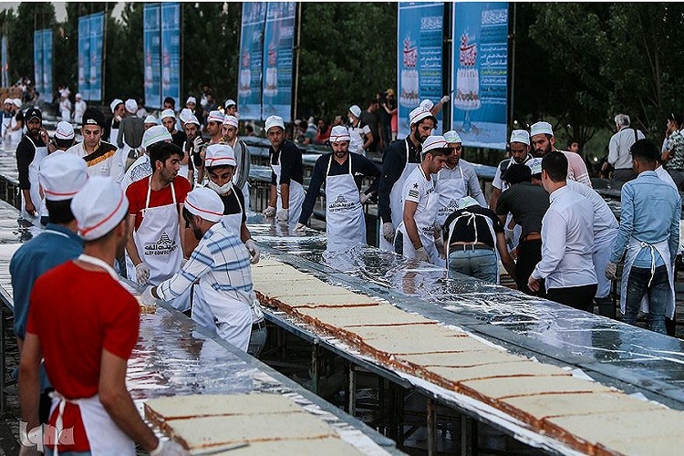 وبلغ طول قطعة الحلوى الفا ومئتين وثلاثة وتسعين مترا وبعرض متر واحد. كما بلغ وزنها خمسة عشر طنا. وقد قام عشرات الطهاة الماهرين بصنع هذه الحلوى وتقسيمها وتوزيعها بين الناس.