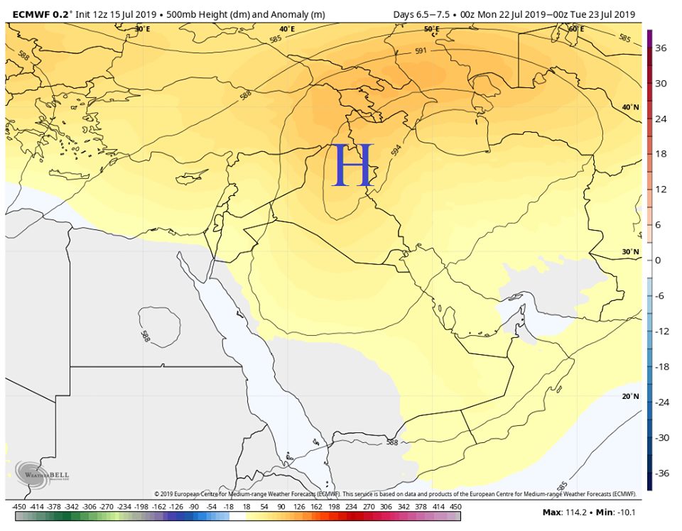 وقال عطيه، في منشور على صفحته بموقع "فيسبوك" اليوم، 16 تموز 2019، إن "التوقعات تشير إلى قدوم موجة حارة تستمر عدة أيام حيث يتطور مرتفع علوي قوي على العراق وايران وشمال الخليج الفارسي يتسبب بتكون الموجة التي تؤدي الى ارتفاع ملموس بدرجات الحرارة السطحية".