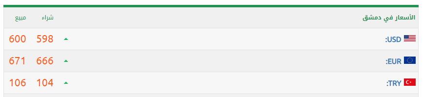 وبحسب جدول سعر صرف العملات مقابل الليرة السورية ، فقد سجل الـدولار في تداولات اليوم الثلاثاء 23 تموز 598 ليرة سورية للشراء .