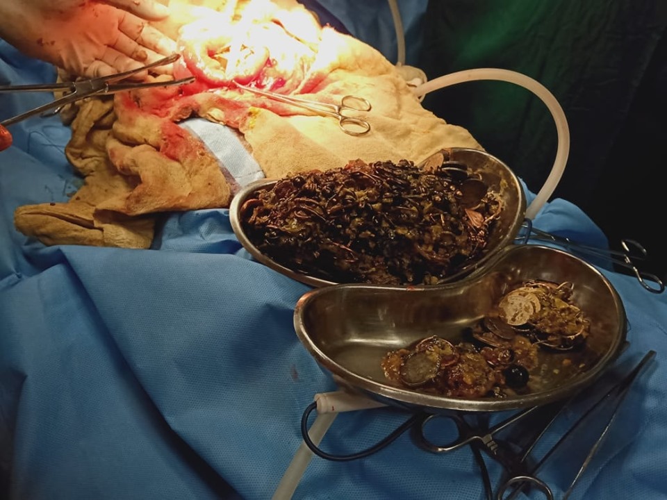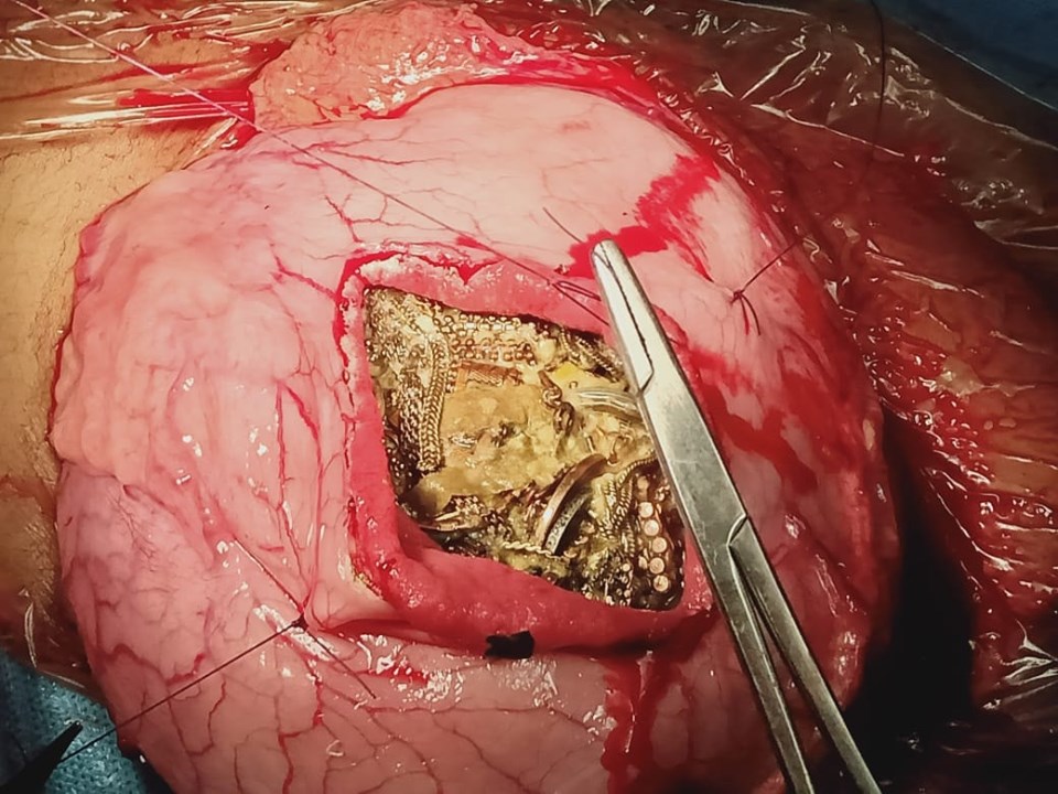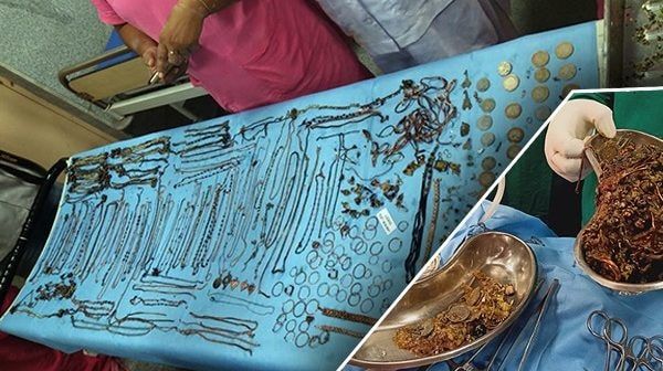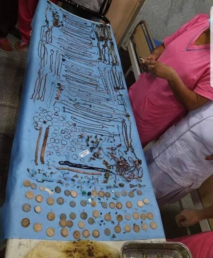 ووفقًا لما ورد في صحيفة ”ديلي ميل“ البريطانية، صدم الأطباء للغاية أثناء الجراحة، حيث عثروا على عشرات المجوهرات والعملات.