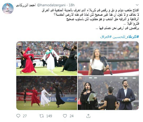 واعرب المنتقدون عن حزنهم وأسفهم لما جرى من افعال مخلة بالأخلاق والشريعة على مقربة من مدينة سيد الشهداء الإمام الحسين عليه السلام واخيه ابي الفضل العباس عليه السلام، مطالبين بعدم تكرار هذه الافعال على هذه الارض المقدسة.
