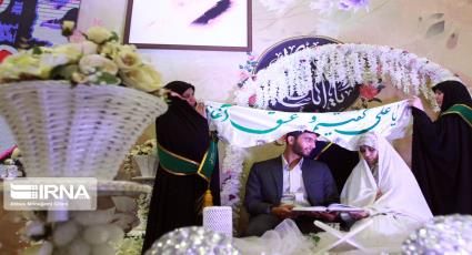 ايران-الكوثر: اقيمت مراسم حفل الزواج الجماعي لـ 150 شابا وشابة من عوائل حرس الثورة الاسلامية في محافظة قم المقدسة (جنوب طهران) بحضور المسؤولين المعنيين.