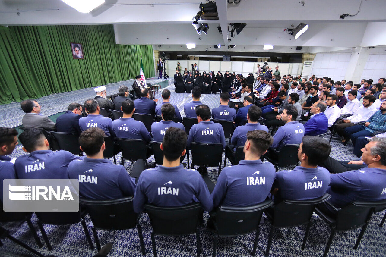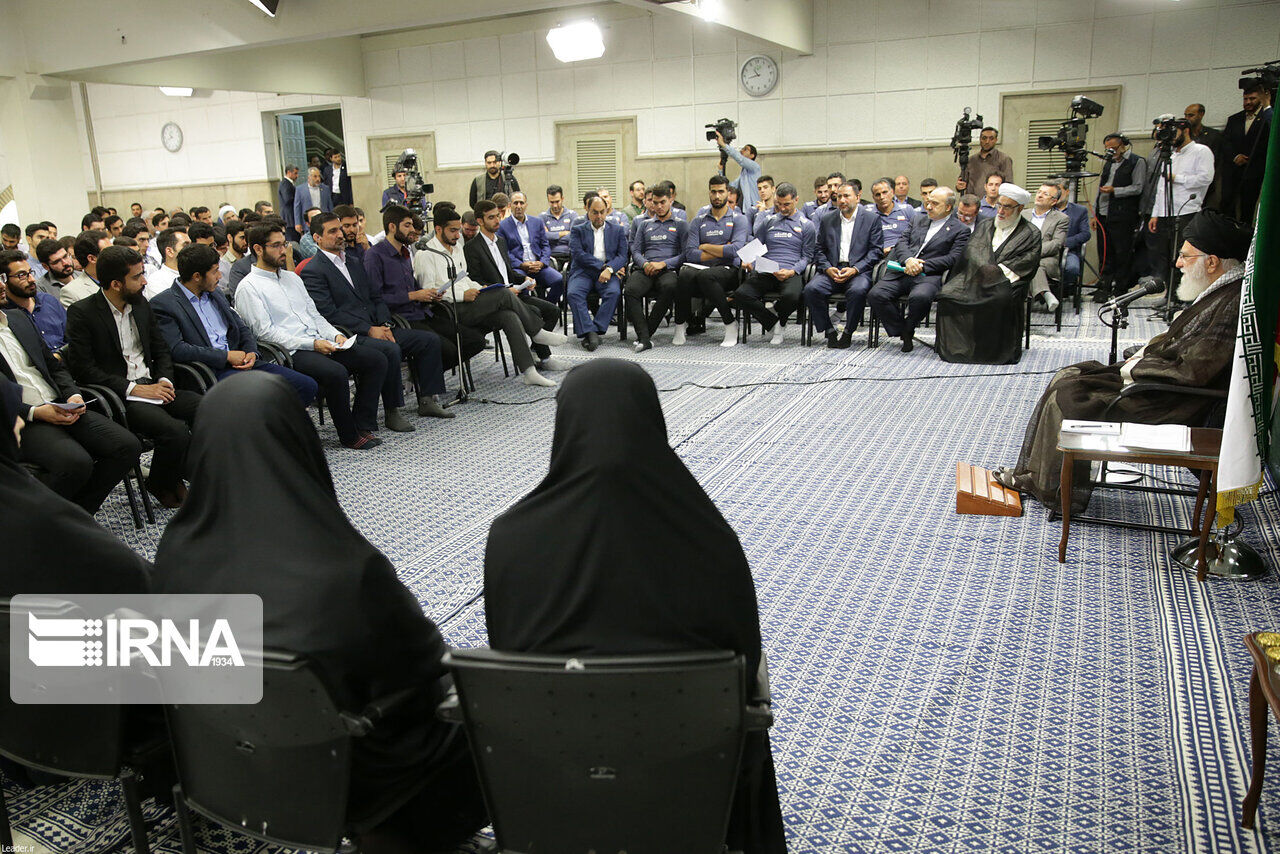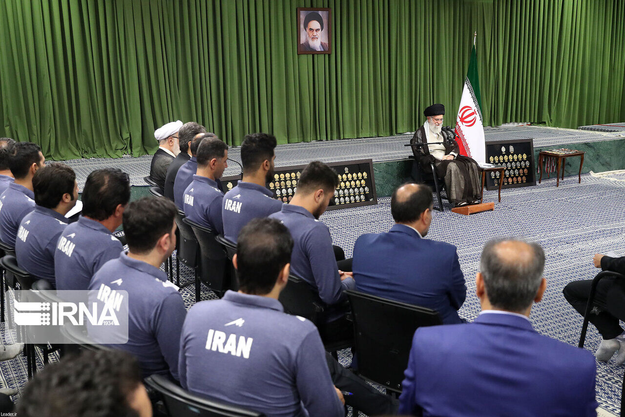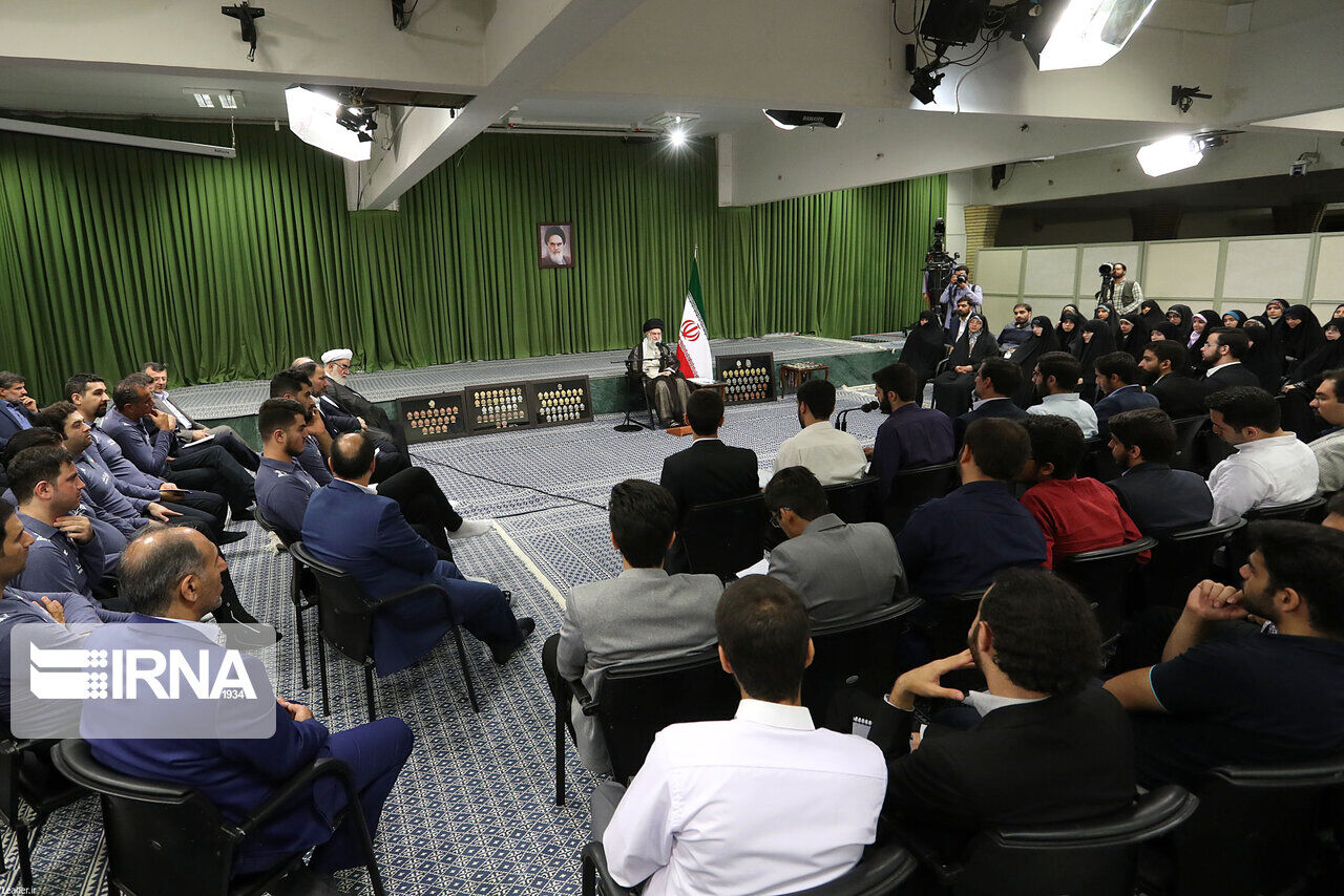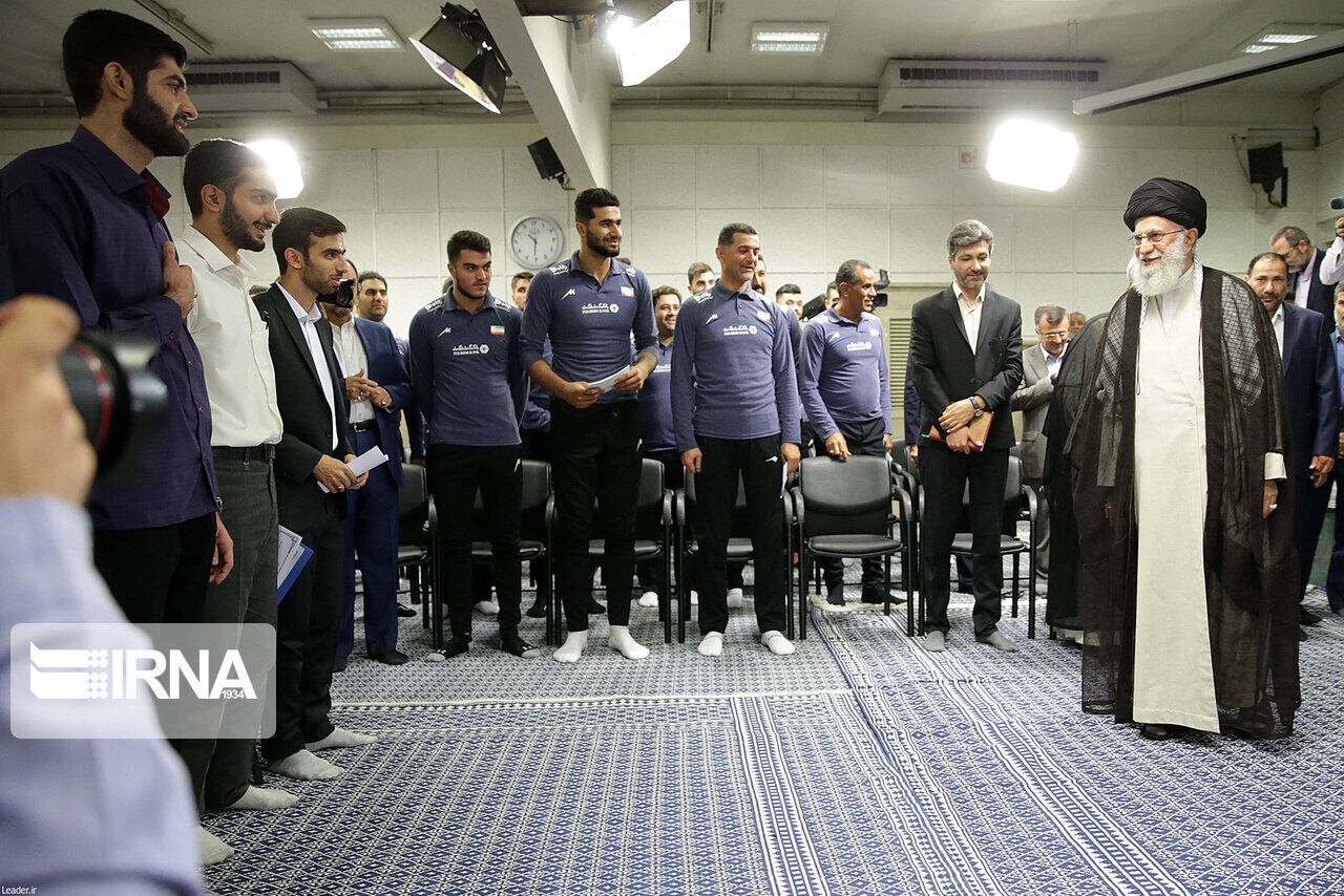 وفي جانب آخر من حديثه تطرق قائد الثورة الاسلامية الى فوز منتخب شباب ايران ببطولة العالم للكرة الطائرة للشباب تحت 21 عاما في نسختها العشرين التي جرت في البحرين الشهر الماضي، قائلا ، بفضل الله تمكن منتخبنا بالكرة الطائرة للشباب من تحقيق انجاز كبير وفازوا ببطولة العالم، وهذا انجاز بالغ الأهمية وقد أدخل السرور الى قلوب أبناء الشعب وأنا شخصيا فرحت لذلك كما انني فرحت لفرح الشعب ايضا.