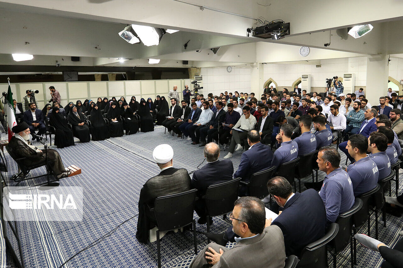 وقال قائد الثورة: ان النخب الوطنية أمامها طريق لا نهاية له من الكفاح والتقدم وبناءا على هذا فلا ينبغي النظر الى الفوز والميدالية بأنها نهاية المطاف لتتوقف عندها طاقات وقدرات النخب.