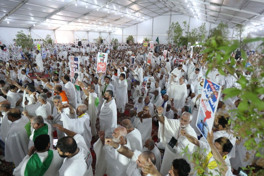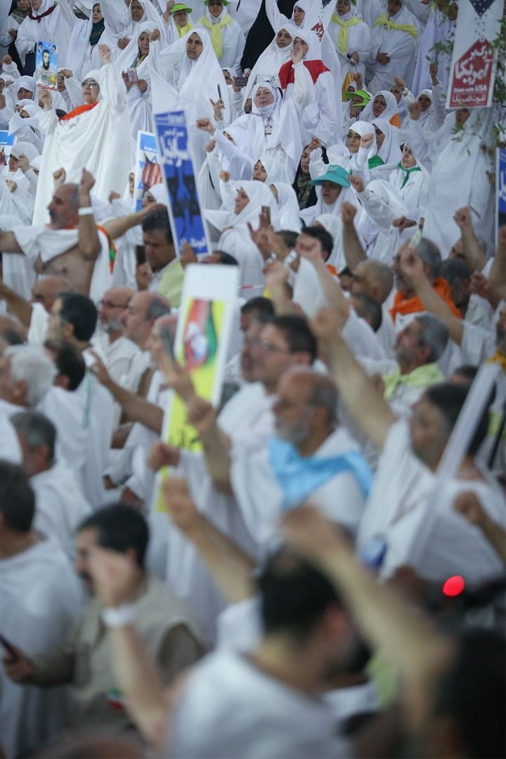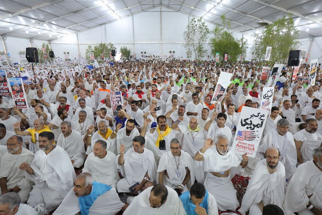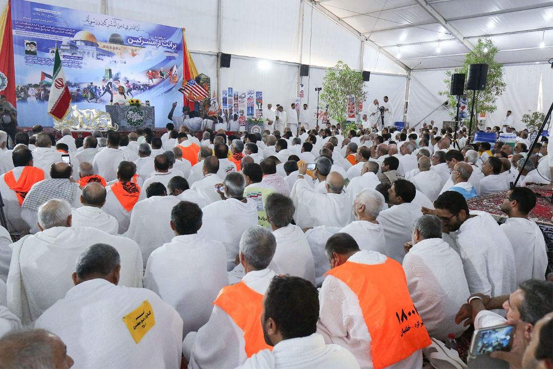 فمنذ الساعات الاولى من التاسع من ذي الحجة شهدت الخيام الايرانية والشوارع المحيطة في صعيد عرفات اقامة مراسم البراءة من المشركين رغم المضايقات التي تثيرها السلطات السعودية لمنع هذه الشعيرة لاسباب معروفة للجميع .