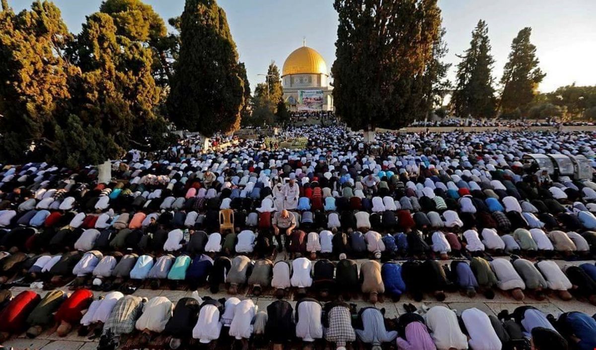 وجاءت الصلاة بالتزامن مع دعوات من أمام المسجد المبارك بتواجد المصلين بشكل خاص والفلسطينيين بشكل عام لحماية المسجد الأقصى ومواجهة مخطط الاقتحام من جانب شرطة الاحتلال الإسرائيليي والمستوطنين المتطرفين في ذكرى ما يسمى “هدم الهيكل المزعوم”. وأعلنت الهيئات الإسلامية في القدس المحتلة، فجر الجمعة الماضية، إقامة صلاة العيد موحدة وجامعة في المسجد الأقصى المبارك، وذلك ردًا على قرار سلطات الاحتلال الإسرائيلي منع صلاة العيد فيه. وقررت الهيئة الإسلامية العليا ومجلس الأوقاف والشؤون الإسلامية ودار الإفتاء بالقدس، فيٍ بيان موحد، إغلاق مساجد مدينة القدس أول أيام العيد لتقام صلاة العيد جامعة في الأقصى. وجاء ذلك ردًا على قرار منع المصلين من إقامة صلاة العيد وإعلان شرطة الاحتلال أنها ستجري “تقييما” للوضع في الأقصى، العيد لتقرر بناء عليه فتح المسجد للاقتحامات والتدنيس من المستوطنين.