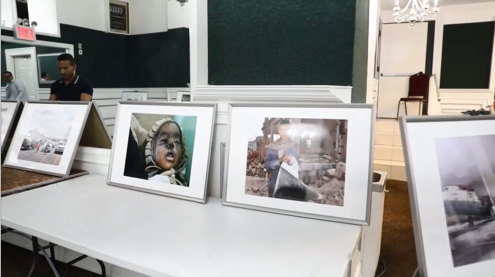 وحظي المعرض الذي نظمه ناشطون حقوقيون تحت عنوان" بين الحظر والحرب" بحضور وإقبال كبير من قبل المهتمين من مختلف الجنسيات ، وشهد افتتاحه تغطية واسعة من وسائل الإعلام الدولية. وجسد المعرض، عبر مجموعة كبيرة من الصور التي التقطها صحفيون وناشطون من اليمن، حجم الكارثة الإنسانية التي خلفها العدوان السعودي، والجرائم المروعة التي ارتكبها بحق المدنيين من الأطفال والنساء والشيوخ واستهداف الأحياء والمرافق الصحية والتعليمية في اليمن. وهدف المعرض إلى إيصال مظلومية الشعب اليمني للعالم وكشف زيف وتضليل وسائل إعلام التحالف للرأي العام العالمي حول حقيقة ما يرتكبه من جرائم حرب بحق المدنيين في اليمن على مدى أكثر من أربع سنوات. وألقيت في الافتتاحية عدداً من الكلمات من قبل أعضاء من الكونغرس ومجلس الشيوخ الأمريكي منهم، ممثلة عن مكتب المسؤل المالي بنيويورك عليا لطيف، القاضية في المحكمة المحلية بنيويورك اوديس كاندي، وعضو الكونغرس الأمريكي ماكس روز. وعبرت الكلمات عن التضامن مع الشعب اليمني، مؤكدة أهمية المساعي نحو إيقاف بيع الأسلحة التي تستخدم في استهداف المدنيين باليمن. وحسب القائمين على المعرض، الشاعر اليمني عبدالله المسمري وسمية الرميم، فإنه يأتي في إطار التحركات الهادفة إلى إيقاف صفقات بيع الأسلحة التي تقتل الشعب اليمني.