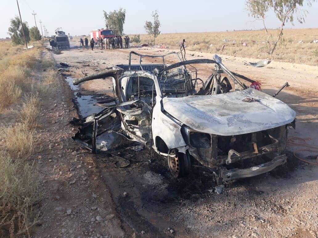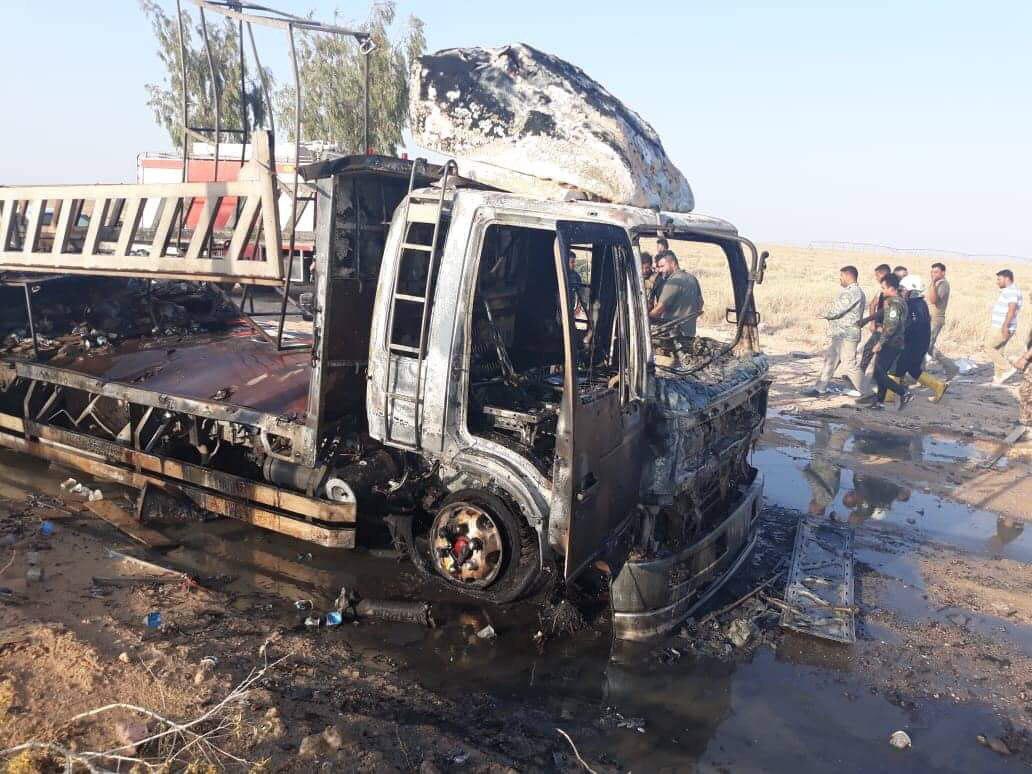 وذطكرت القيادة في بيان إن" طائرتين مسيرتين مجهولتين استهدفتا، اليوم، نقطة ثابتة للواء 45 بالحشد الشعبي في قاطع عمليات الأنبار {15 كم عن الحدود العراقية السورية}، ما اسفر عن استشهاد مقاتلين اثنين من اللواء 45 وإصابة آخر واحتراق عجلتين.