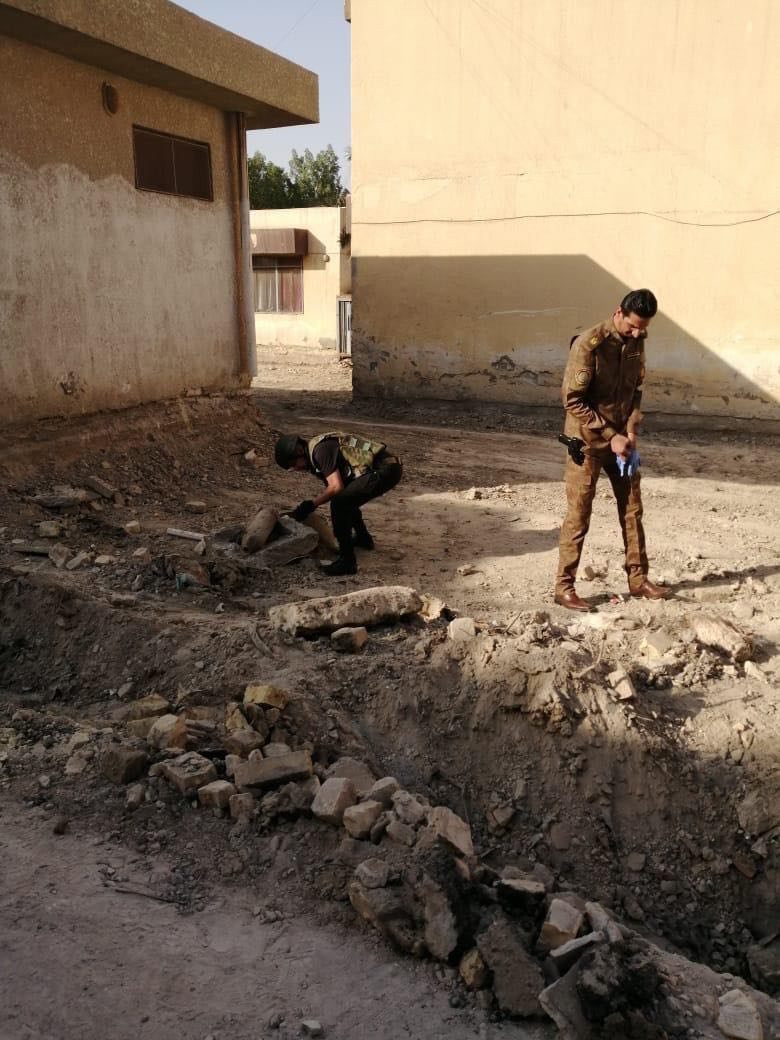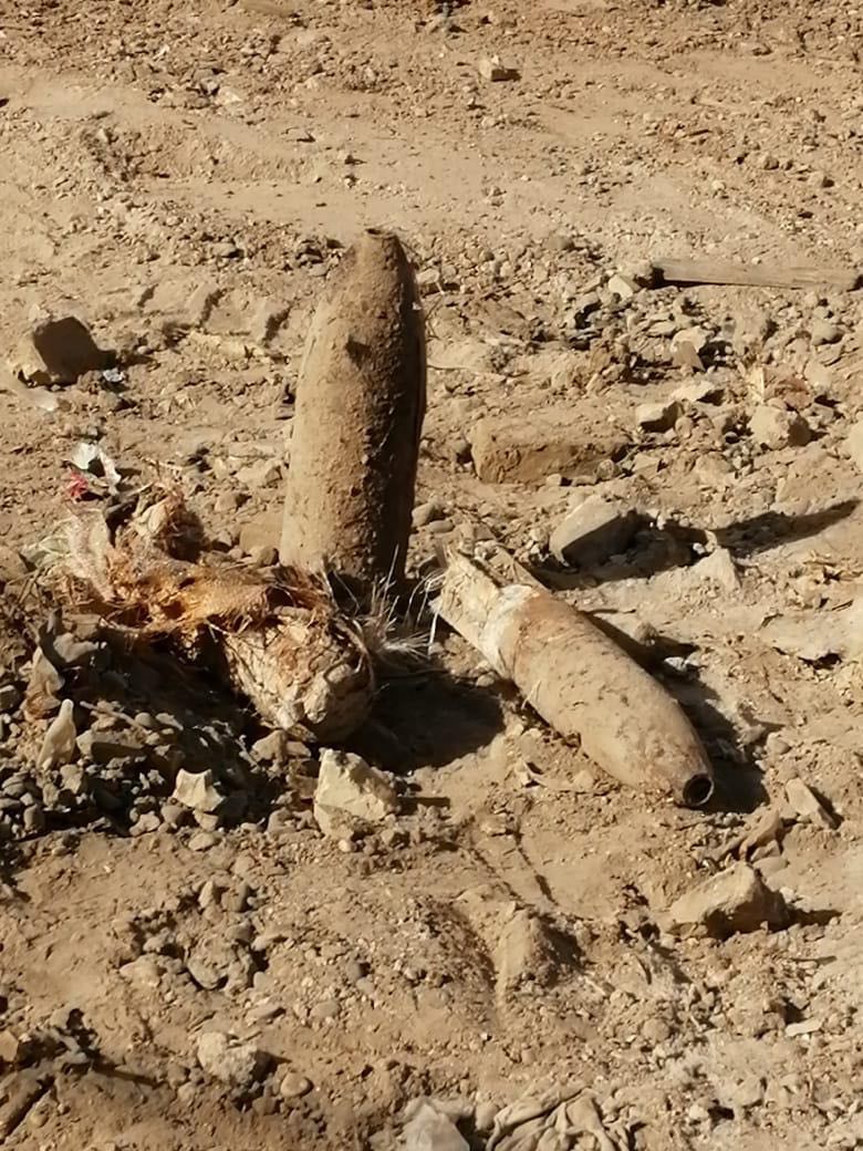 اثناء عمليات ترميم لجدار مدرسة في مدينة الصدر شاهد المقاول المسؤول على البناء صواريخ والغام مدفونة الى جانب الجدار.