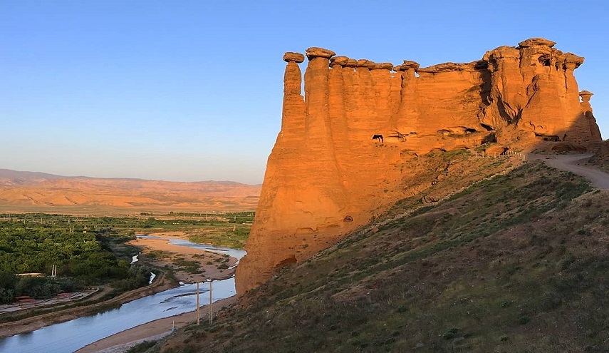 تحاذي هذه القرية ضفاف نهر قزل اوزن وهي تضم العديد من الغرف والممرات والسلالم المتعرجة، ويقول علماء الآثار بأنها شيدت في العهد الإخميني، وهي تعتبر واحدة من 20 قلعة تأريخية موجودة في مدينة ماه نشان، ويرى بعض العلماء أنها تأريخها الحقيقي يعود إلى الحقبة الميدية إذ إن الميديون قد استوطنوا هذه المنطقة وشيدوا القلاع دفاعاً عن أنفسهم قبال هجمات الأعداء.