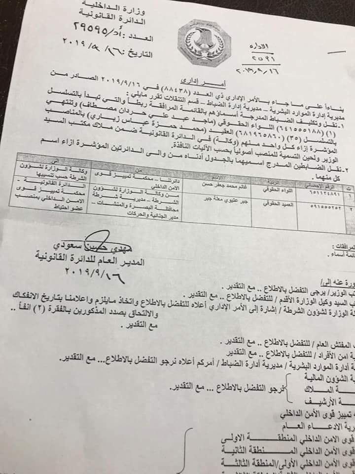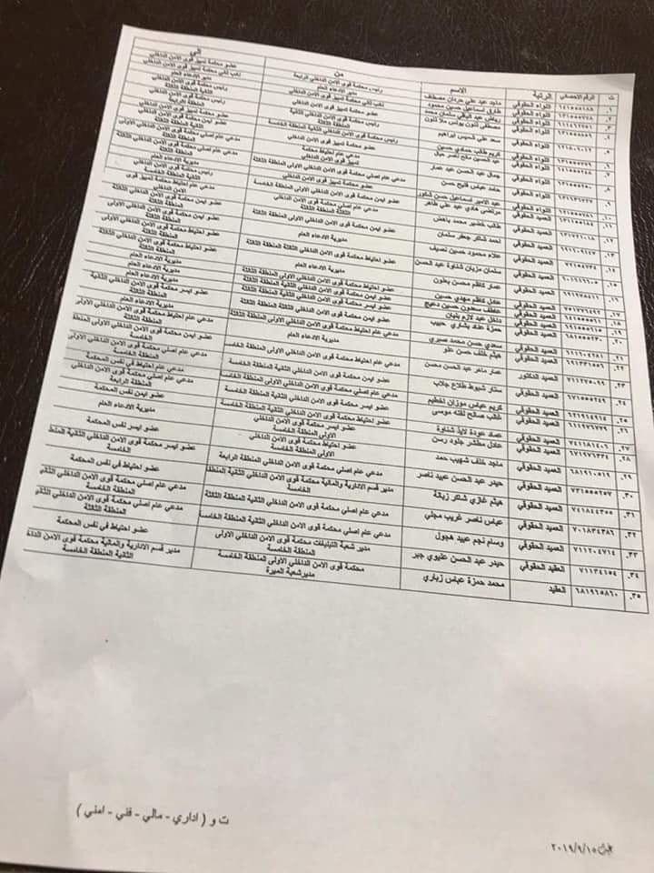 وبحسب وثائق صادرة عن وزارة الداخلية فإن هذه التغييرات شملت ضباط محاكم قوى الامن الداخلي في الوزارة.