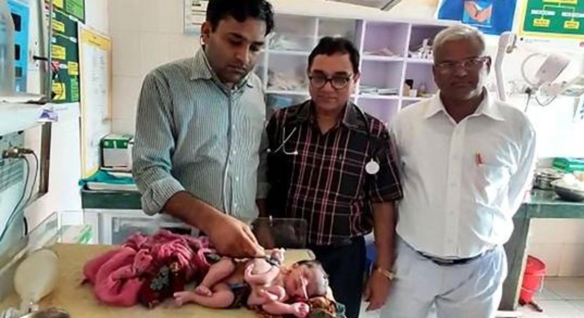 في حالة شكلت صدمة للأطباء في أحد مستشفيات الهند، وضعت امرأة، 3 توائم، أحدهما طبيعي، والآخر عبارة عن توأمين ملتصقين.