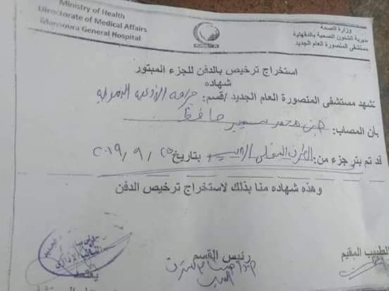 وأعلن الدكتور سعد مكي، وكيل وزارة الصحة بالدقهلية شمال البلاد، وفاة الطفلة جنى محمد سمير التي تبلغ من العمر 5 سنوات، متأثرة بإصاباتها الشديدة، والتي أدت لتوقف عضلة القلب وبتر الساق اليسرى.