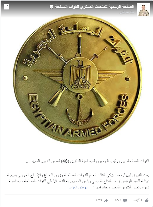 جاء ذلك تعليقا على ذكرى انتصار مصر في حرب أكتوبر 1973.