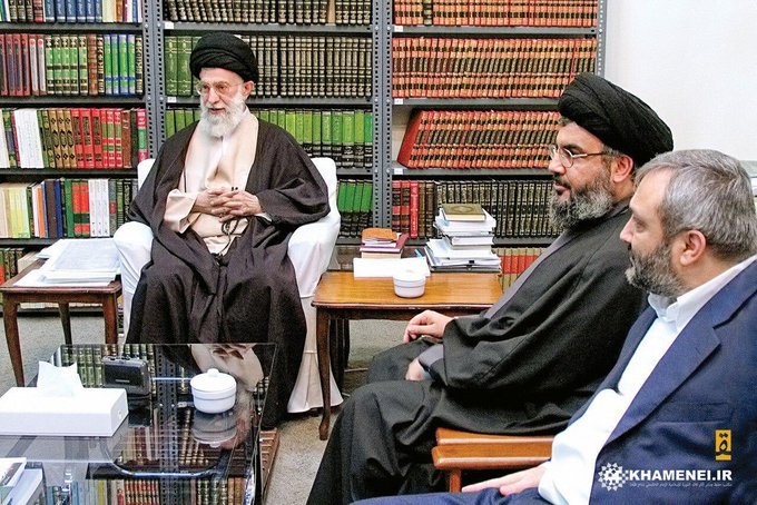 صورة نادرة تجمع الامام الخامنئي مع السيد حسن نصر الله والحاج عماد مغنية