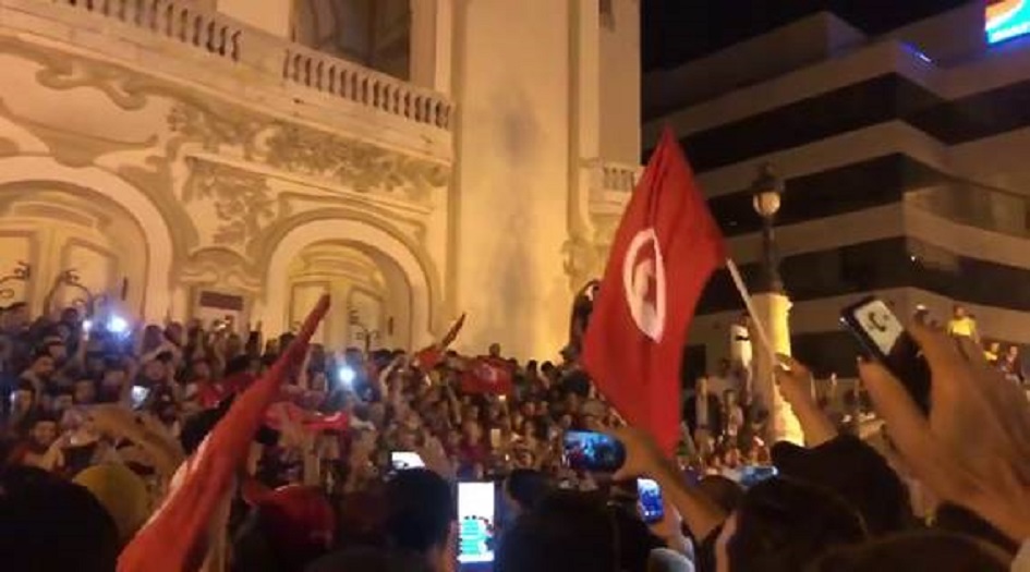 آلاف التونسيين احتشدوا للاحتفال مساء أمس الأحد إثر انتهاء عملية الاقتراع وإعلان المرشح الرئاسي "قيس سعيد" فوزه بالانتخابات. وفقًا للفيديو المتداول، فقد هتف التونسيون خلال الاحتفالات "لا إله إلا الله.. محمد رسول الله.. السيسي عدو الله".