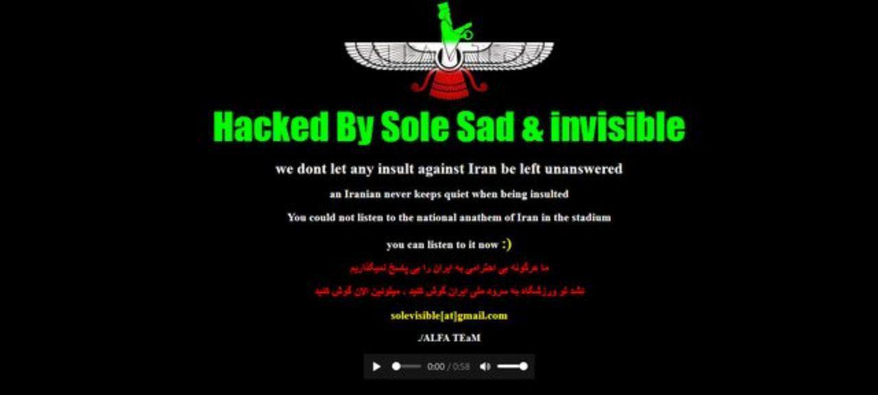 وجاء في رسالة تركها المخترقون على الموقع بعد اختراقه باللغتين الفارسية والانجليزية: نحن لن نترك أي إهانة لإيران دون رد. بما انكم لم تتمكنوا من الاستماع للنشيد الوطني الايراني في الملعب بامكانكم الاستماع اليه الآن.