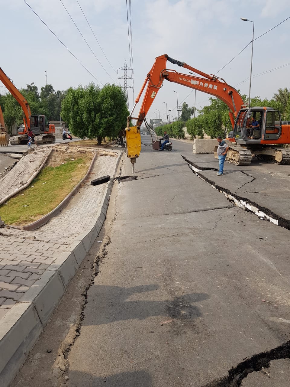 تعرض شارع وجزرة وسطية الى تخسف غريب حصل شمالي بغداد وصفته الجهات الحكومية بالعملاق.