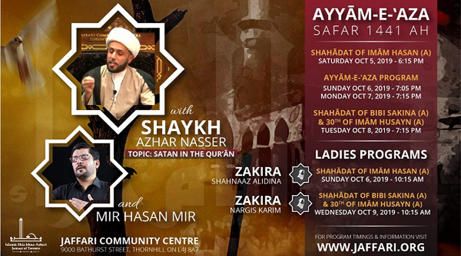 ویعدّ المرکز الإسلامی للشیعة الجعفریة في تورنتو مرکزاً إسلامیاً یتمتع بمصلی ومسجد ومکتبة ومقهی وصالة ریاضیة للرجال والنساء وصالة ضیوف ومدرسة إسلامیة.