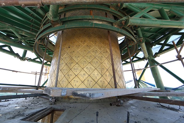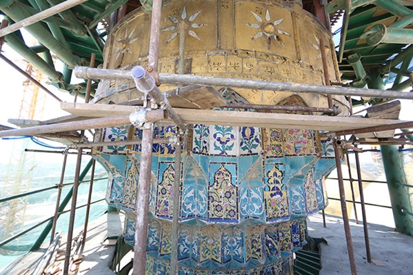 وفي هذا السياق يتم ترقيم بلاطات القاشاني القديمة المركبة على الهيكل الخرساني ومن ثم ترميمها ووضعها في أماكنها المناسبة بعد إزالتها من مواقعها.