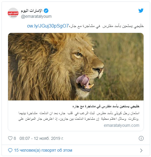 وتابعت، أنه "وبعد نقاش حاد، احتدم الجدال بينهما، وتحول إلى تدافع وسب، ليغادر المواطن ويعود إلى جاره وبرفقته أسد، ليرهب الجار وسط ذهوله".