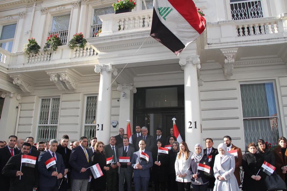 كما اصدرت السفارة بياناً باللغتين العربية والانكليزية قالت فيه ان الوطن يمر بفترة عصيبة من تاريخه وان العالم يتطلع الى عراق فاعل وله دور في المنطقة.