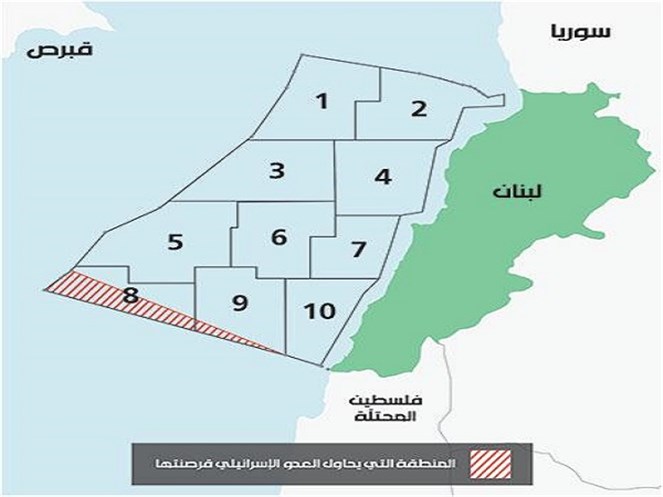 وتشكل البلوكات 8 و9 و10 نقطة خلاف مع "إسرائيلط، وتزعم هذه الأخيرة أن البلوك 8 جنوبا تبلغ مساحته 1400 متر مربع، وبعمق يتراوح بين 1672 و2062 مترا تحت سطح البحر جنوبا، وتزعم أنه يقع أيضا داخل حدودها.