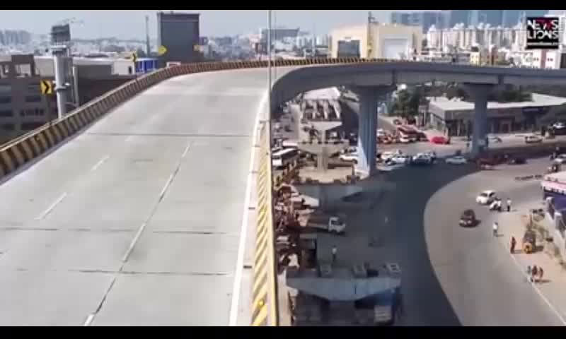 ويظهر في الفيديو تحليق السيارة إثر فقدان السائق السيطرة عليها عند أحد المنعطفات لتقفز من فوق الجسر وتهبط على رؤوس المارة.