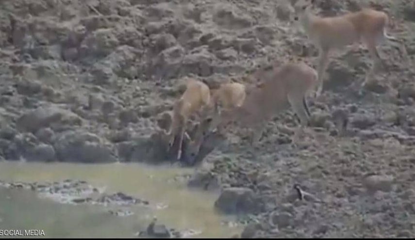وظهر في الفيديو مكان لتجمع الغزلان حول مصدر مياه عكرة، عند بركة ماء في منطقة ماهاراشترا، في الهند.
