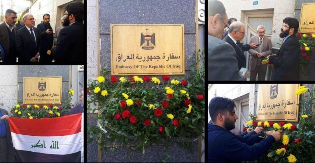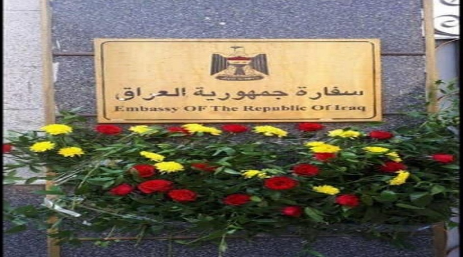 قدم مجموعة من طلاب الجامعات الايرانية، يوم الاحد باقات من الزهور الى السفارة العراقية بطهران ، معربين عن تضامنهم مع الشعب العراقي.